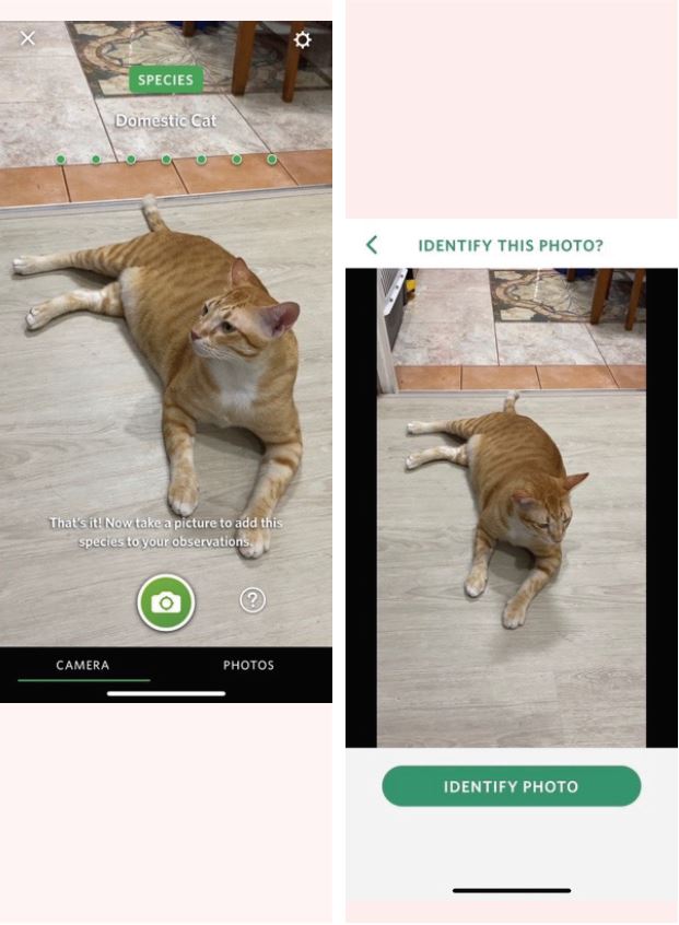 ในแอปพลิเคชัน ระบบจะเปิดกล้องถ่ายรูปขึ้นมาโดยอัตโนมัติ ผู้ใช้งานสามารถนำไปสแกนสิ่งมีชีวิตที่พบเพื่อระบุสปีชีส์ก่อนถ่ายรูป ในกรณีที่ระบบสามารถวิเคราะห์และระบุได้ถึงระดับสปีชีส์ ระบบจะแสดงคำว่า Species ชื่อสามัญเป็นภาษาอังกฤษหรือชื่อวิทยาศาสตร์ และจะขึ้นจุดสีเขียวจำนวน 7 จุด ซึ่งแต่ละจุดแสดงถึงระดับขั้นทางอนุกรมวิธาน คือ Kingdom, Phylum, Class, Order, Family, Genus และ Species ตามลำดับ นอกจากนี้ ยังสามารถวิเคราะห์รูปถ่ายที่มีอยู่แล้วในโทรศัพท์มือถือเพื่อระบุสปีชีส์ได้เช่นกัน โดยเลือกที่ Photos แล้วเลือกรูปภาพของสิ่งมีชีวิต และเลือกคำสั่ง Identify Photo ดังภาพ 3