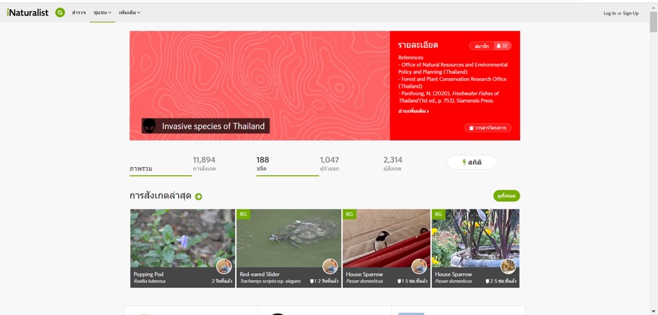 ภาพ 6 โครงการ Invasive Species of Thailand ในเว็บไซต์ iNaturalist