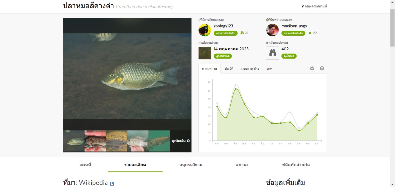 ภาพ 4 ข้อมูลของสิ่งมีชีวิตที่ระบุสปีชีส์โดยระบบ iNaturalist
