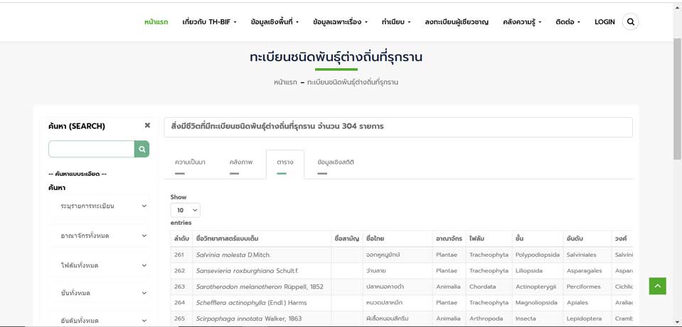 คลังข้อมูลสารสนเทศทะเบียนชนิดพันธุ์ต่างถิ่นที่รุกรานของประเทศไทย จาก TH-BIF