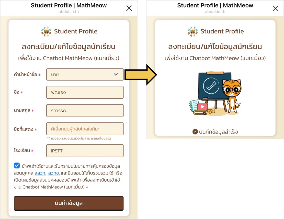 แจ้งปัญหาหรือข้อเสนอแนะเกี่ยวกับการใช้งาน MathMeow ได้ที่