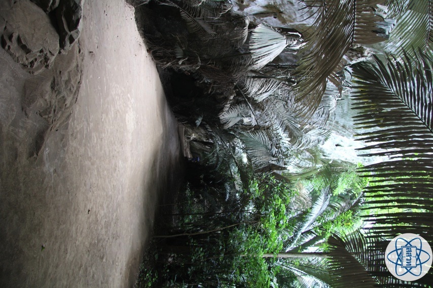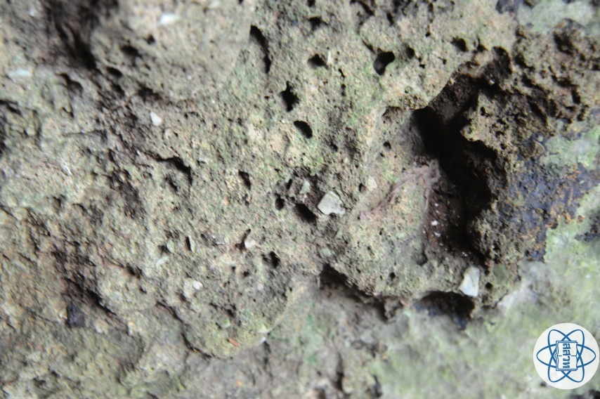 ภาพ 7.3 บริเวณพื้นถ้ำ หรือพื้นที่อยู่ตรงกับตำแหน่งของน้ำที่หยดจากเพดานถ้ำ
