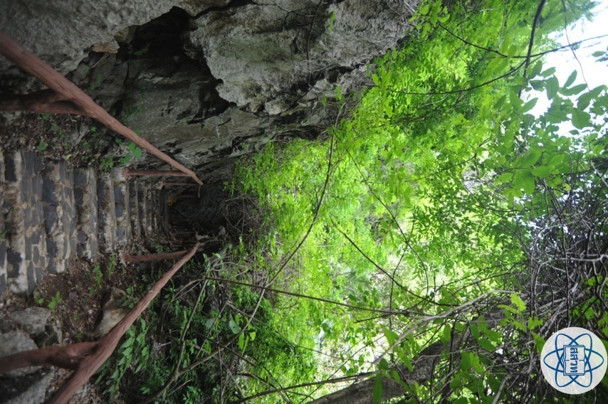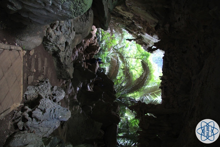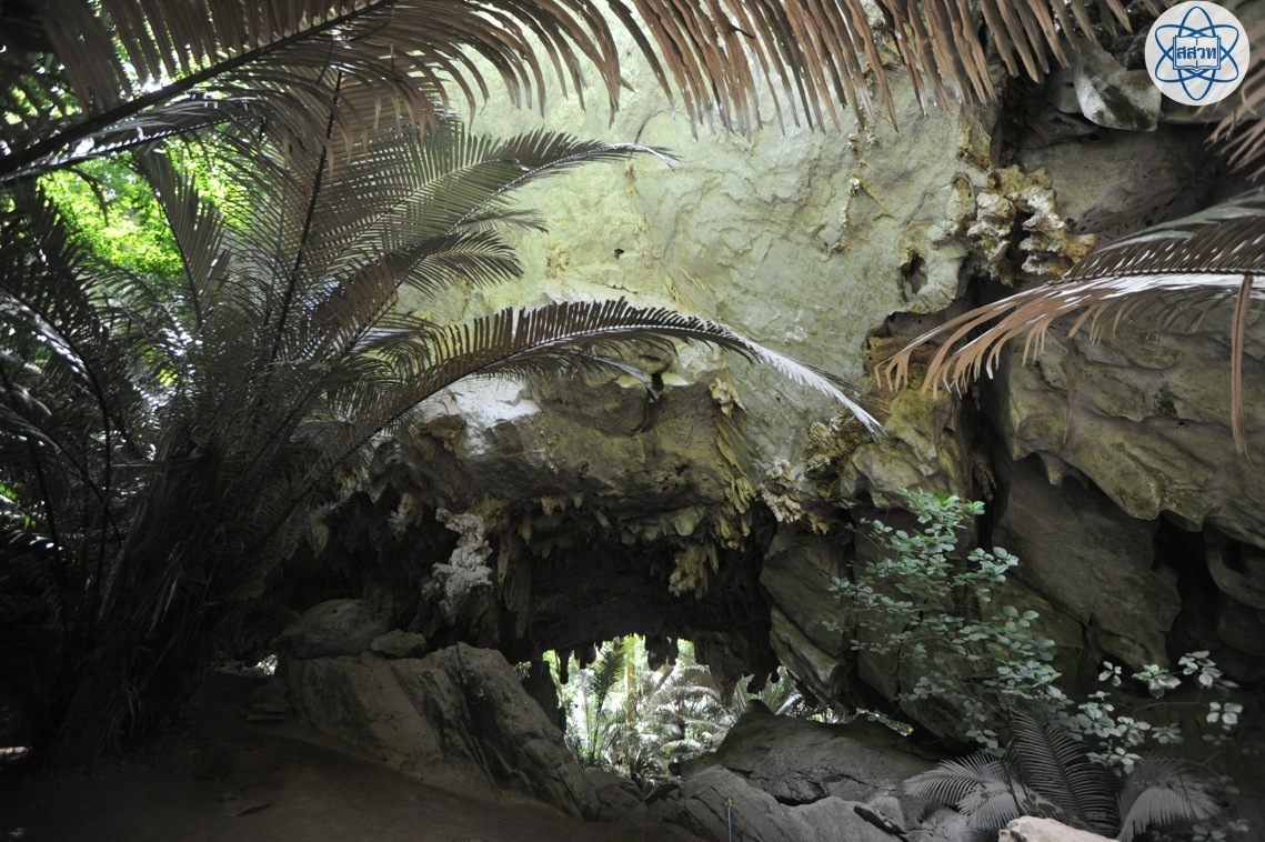 (ภาพจาก ttp://upload.wikimedia.org/wikipedia/commons/3/31/Closeup_of_a_skylight_on_coastal_plain%2C_with_lava_stalactites_forming_on_the_roof_of_the_tube.jpg)
