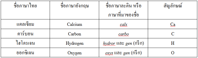 ตาราง 1 ชื่อธาตุ ที่มาของชื่อ และสัญลักษณ์ของธาตุ 4 ชนิด