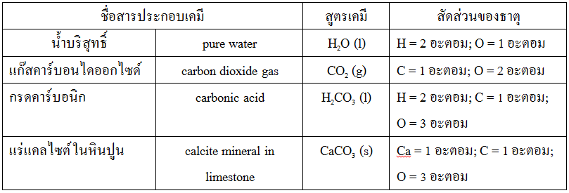 ตารางที่ 2 สารประกอบเคมี สูตรเคมี และสัดส่วนของธาตุในสารประกอบ