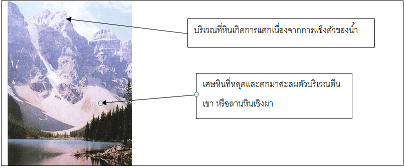 ภาพ 5: การเกิดลิ่มน้ำแข็ง และลานหินเชิงผา ที่เกิดในภูเขาสูงที่มีการอากาศหนาวเย็น