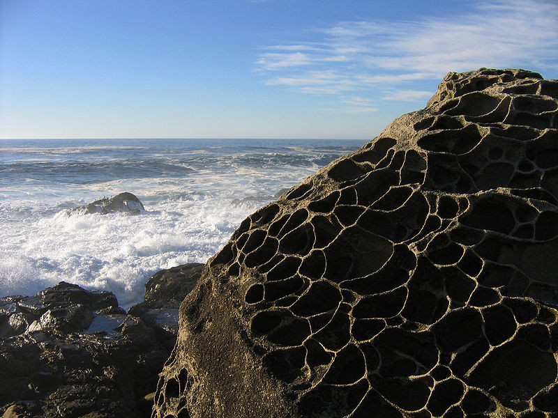 หินทุกชนิดที่เกิดบริเวณชายฝั่งทะเล มักจะมีแนวแตก รอยเลื่อน และลักษณะการวางตัวของชั้นหิน ผลจากการที่หินมีธรณีโครงสร้างดังกล่าวทำให้หินมีความคงทนต่อการกร่อนไม่เท่ากัน บริเวณที่มีแนวแตก รอยเลื่อน หรือรอยต่อของชั้นหิน เป็นบริเวณที่ง่ายต่อการกร่อน และบริเวณดังกล่าวจะถูกกร่อนโดยคลื่นในทะเลได้ง่าย และเกิดเป็น โพรงหินชายฝั่ง ถ้ำชายฝั่งขนาดเล็ก ไปจนถึงถ้ำชายฝั่งขนาดใหญ่