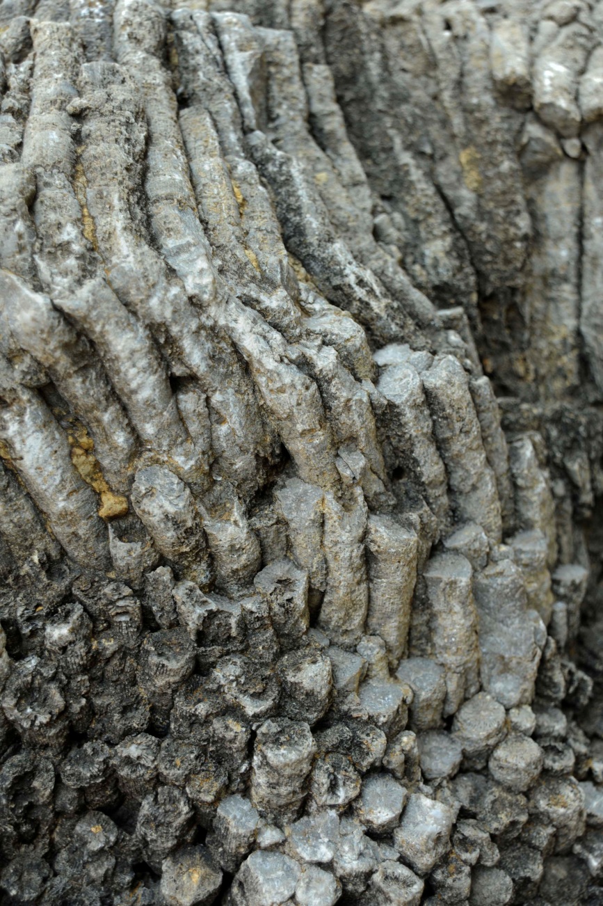 ภาพที่6.3 ผิวลาวาประเภทบะซอลต์ที่แตกแสดงให้เห็นลาวาที่ไหลด้านใต้ ลักษณะของลาวา ที่เย็นตัวบริเวณส่วนล่างของเปลือกลาวาที่เย็นตัวมีลักษณะคล้ายหินย้อย
