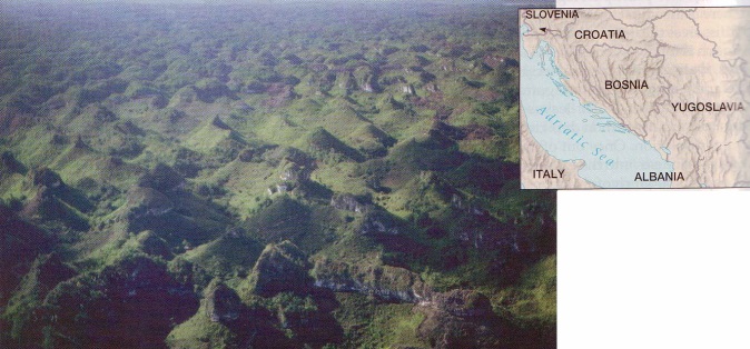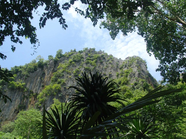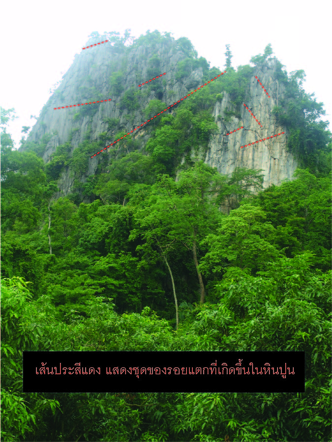 รูปที่ 6.6 คลื่นชายฝั่ง กัดเซาะภูเขาหินปูนที่ตั้งริมทะเล หินปูนมีแนวแตกหลายทิศทาง