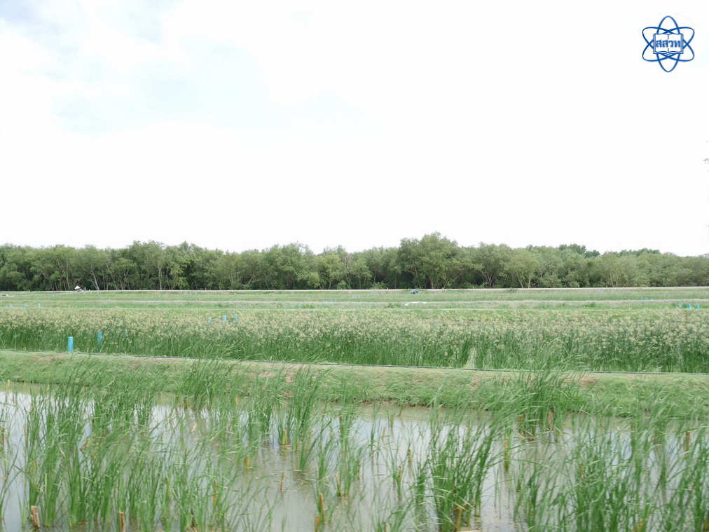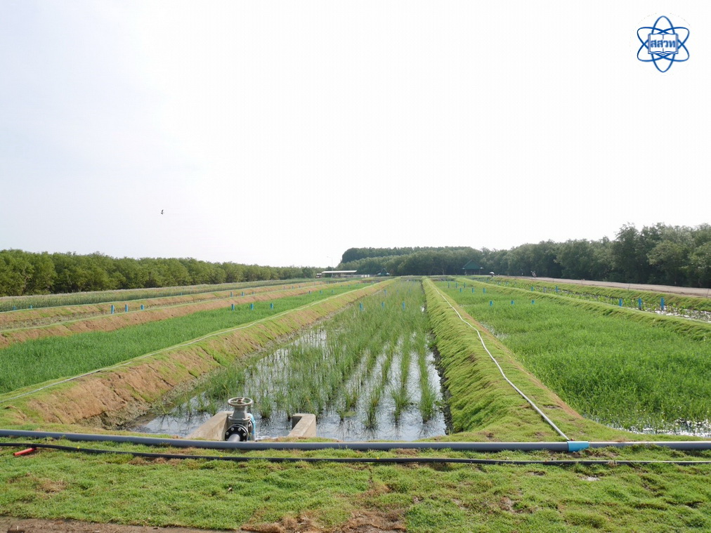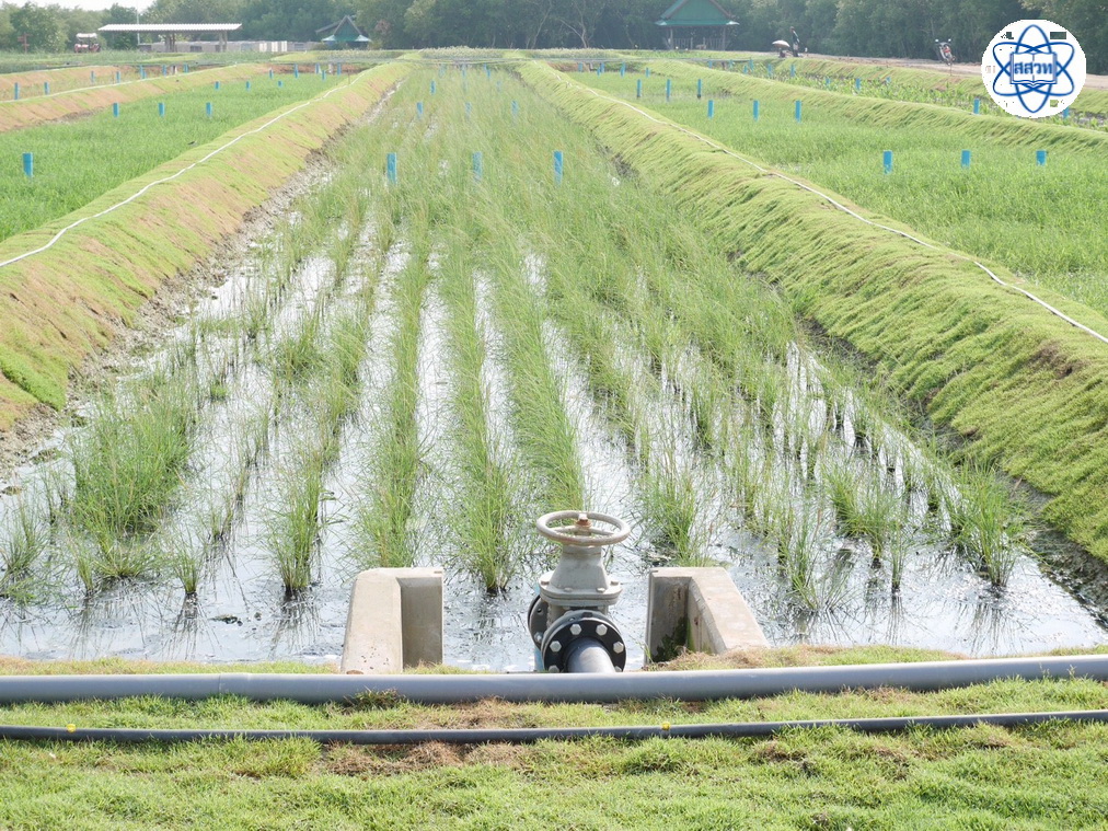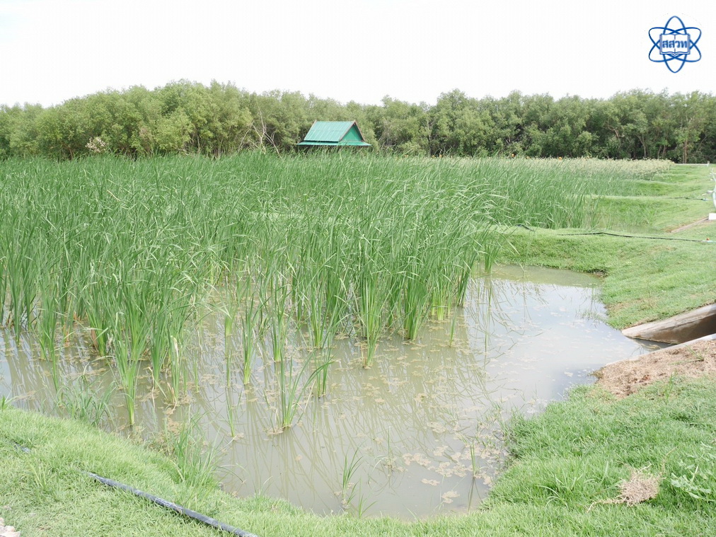 น้ำเสียที่เกิดจากชุมชนเป็นน้ำเสียที่ประกอบไปด้วยธาตุไนโตนเจน ฟอสฟอรัส และโพแทสเซียม ดังนั้นทางโครงการศึกษาวิจัยและพัฒนาสิ่งแวดล้อมแหลมผักเบี้ยอันเนื่องมาจากพระราชดำริ จึงได้มีการทดลองนำน้ำเสียจากชุมชนมาทำการปลูกข้าว โดยทางโครงการศึกษาวิจัยได้นำน้ำเสียจากชุมชนและน้ำจากระบบชลประทานในอัตราส่วน 50:50 มาใช้ในแปลงปลูกข้าว ซึ่งผลที่ได้พบว่าต้นข้าวมีการเจริญเติบโตได้ดียิ่งไปกว่านั้นผลผลิตที่ได้ยังสามารถนำไปใช้บริโภคได้ เนื่องจากน้ำเสียที่นำมาใช้นี้เป็นน้ำเสียจากชุมชนที่เมื่อถูกนำมาใช้และได้ทำการทดสอบค่าแล้วพบว่าสิ่งเจือปน ดังเช่น โลหะหนัก มีค่าไม่เกินค่าที่มาตรฐานกำหนด