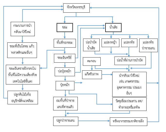 - ปุ๋ยหมักจากขยะและน้ำชะจากขยะสามารถนำมาปลูกพืชเกษตรได้ และน้ำเสียจากชุมชนและน้ำที่ผ่านการบำบัดแล้วสามารถนำมาใช้ปลูกพืชเกษตรได้ โดยเฉพาะพืชดอกและข้าว