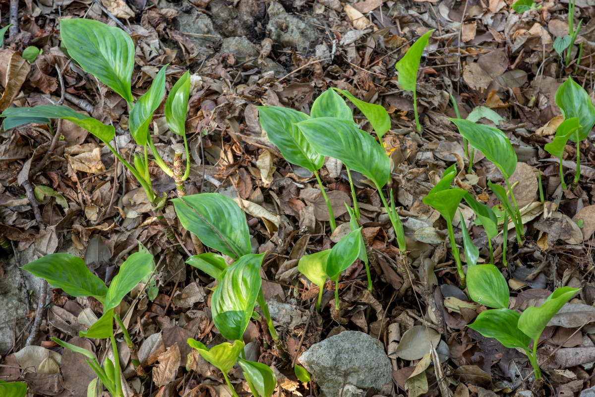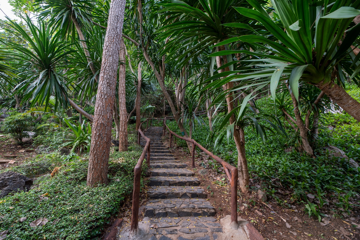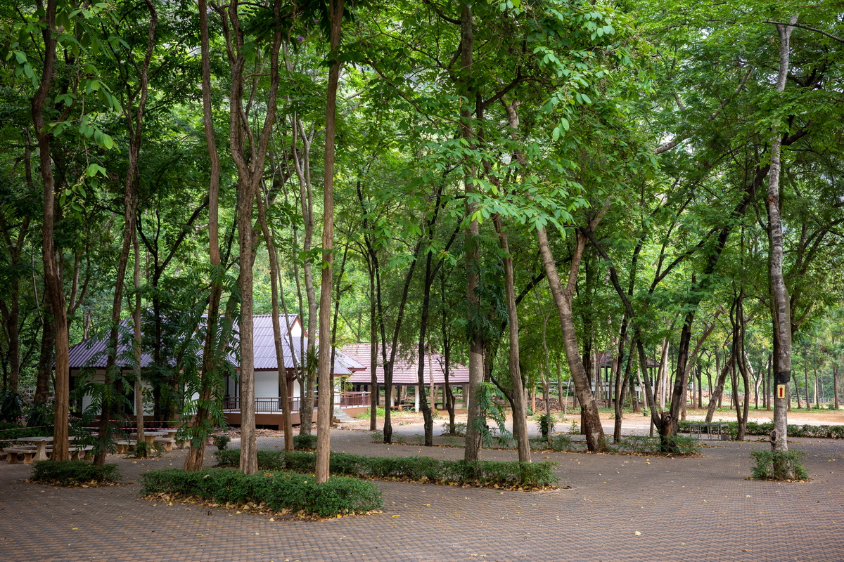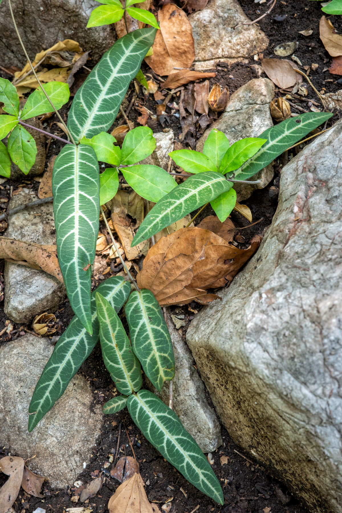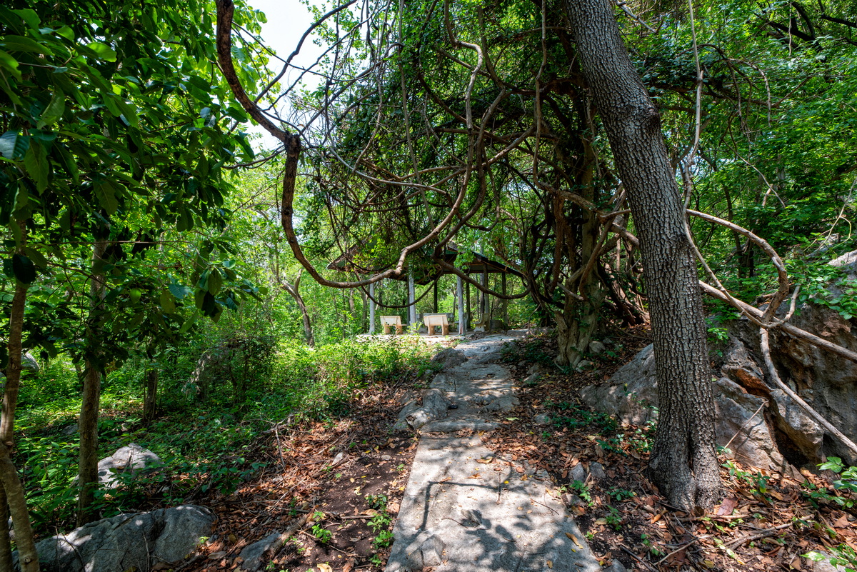 บัวสันโดษ หรือ ชื่อเรียกอื่นๆ แผ่นดินเย็น ว่านพระฉิม ชื่อทางวิทยาศาสตร์ Nervilia aragoana Gaud. จัดอยู่ในวงศ์ : ORCHIDACEAE เป็นไม้ล้มลุกลงหัวขนาดเล็ก ลำต้นงอกออกจากหัว ซึ่งเป็นสมุนไพรบำรุงกำลัง แก้โรคหัวใจ แก้จุกเสียดแน่นและแก้พิษไข้ ลักษณะพิเศษคือ จะออกส่วนของดอกก่อน เมื่อดอกโรยจะเป็นใบ ดังนั้นคนส่วนใหญ่จึงจะคุ้นกับบัวสันโดษที่เป็นใบแล้ว นอกจากนี้ยังมีพันธุ์ไม้และพืชสมุนไพรอีกมากมายหลายอย่าง เช่น กะเบาลิง สมพง ปออีเก้ง มะหาด มะไฟป่า สาบเสือ กระท่อมเขียว จันทน์ผา สลัดใด มะกา ซึ่งล้วนแต่เป็นพืชที่มีคุณสมบัติเป็นยาได้ จึงทำให้ที่นี่เป็นแหล่งเรียนรู้เกี่ยวกับพืชสมุนไพรอีกด้วย