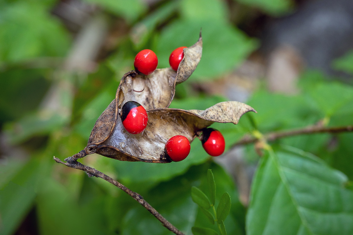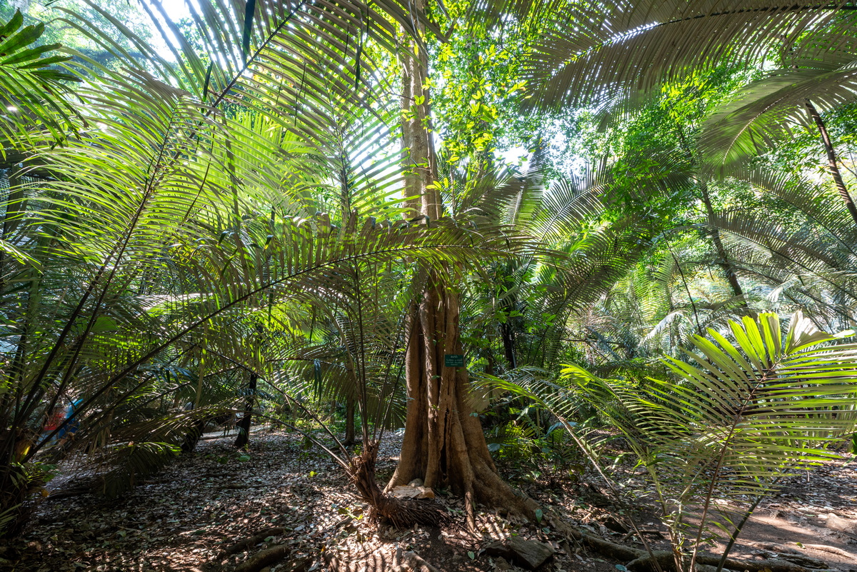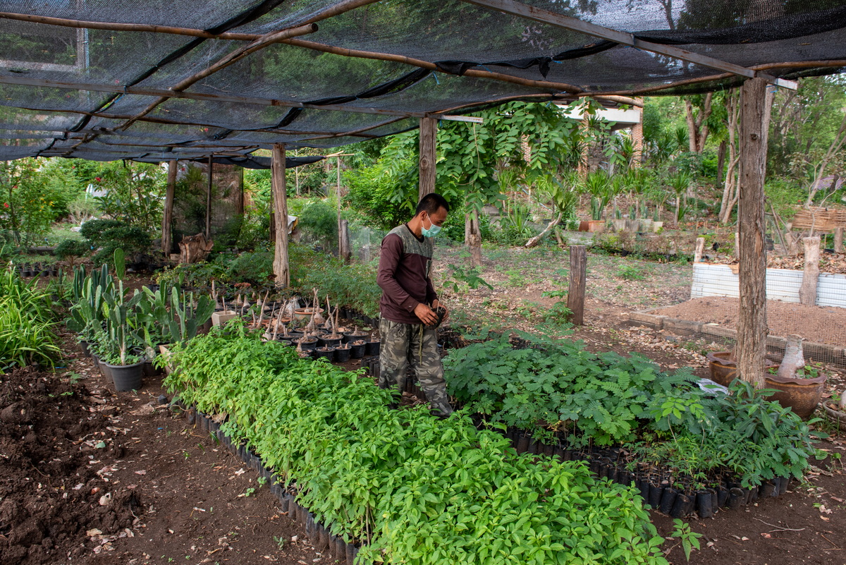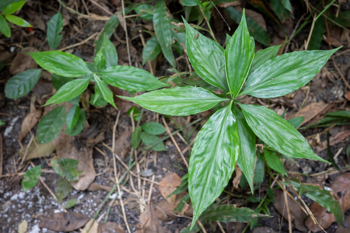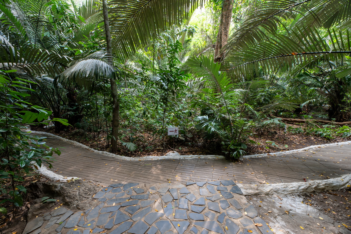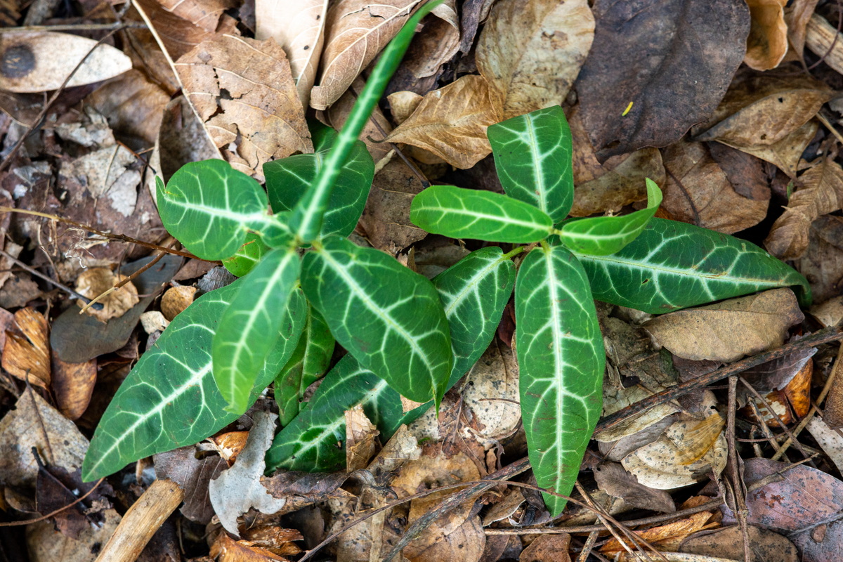 บัวสันโดษ หรือ ชื่อเรียกอื่นๆ แผ่นดินเย็น ว่านพระฉิม ชื่อทางวิทยาศาสตร์ Nervilia aragoana Gaud. จัดอยู่ในวงศ์ : ORCHIDACEAE เป็นไม้ล้มลุกลงหัวขนาดเล็ก ลำต้นงอกออกจากหัว ซึ่งเป็นสมุนไพรบำรุงกำลัง แก้โรคหัวใจ แก้จุกเสียดแน่นและแก้พิษไข้ ลักษณะพิเศษคือ จะออกส่วนของดอกก่อน เมื่อดอกโรยจะเป็นใบ ดังนั้นคนส่วนใหญ่จึงจะคุ้นกับบัวสันโดษที่เป็นใบแล้ว นอกจากนี้ยังมีพันธุ์ไม้และพืชสมุนไพรอีกมากมายหลายอย่าง เช่น กะเบาลิง สมพง ปออีเก้ง มะหาด มะไฟป่า สาบเสือ กระท่อมเขียว จันทน์ผา สลัดใด มะกา ซึ่งล้วนแต่เป็นพืชที่มีคุณสมบัติเป็นยาได้ จึงทำให้ที่นี่เป็นแหล่งเรียนรู้เกี่ยวกับพืชสมุนไพรอีกด้วย