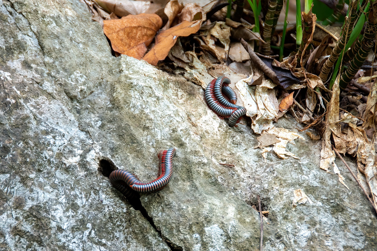 ในช่วงเดือนสิงหาคมถึงพฤศจิกายน ระหว่างทางเดิน ด้านข้าง ตามพื้น หรือใต้ต้นไม้ จะมองเห็นกิ้งกือสีชมพูตัวเล็กๆ หรือตามแอ่งน้ำข้างทางเดิน อาจจะเห็นก้อนสีชมพูเล็กๆ ลอยตัวอยู่บนผิวน้ำ นั่นก็คือตัวอ่อนของกิ้งกือมังกรสีชมพูนั่นเอง