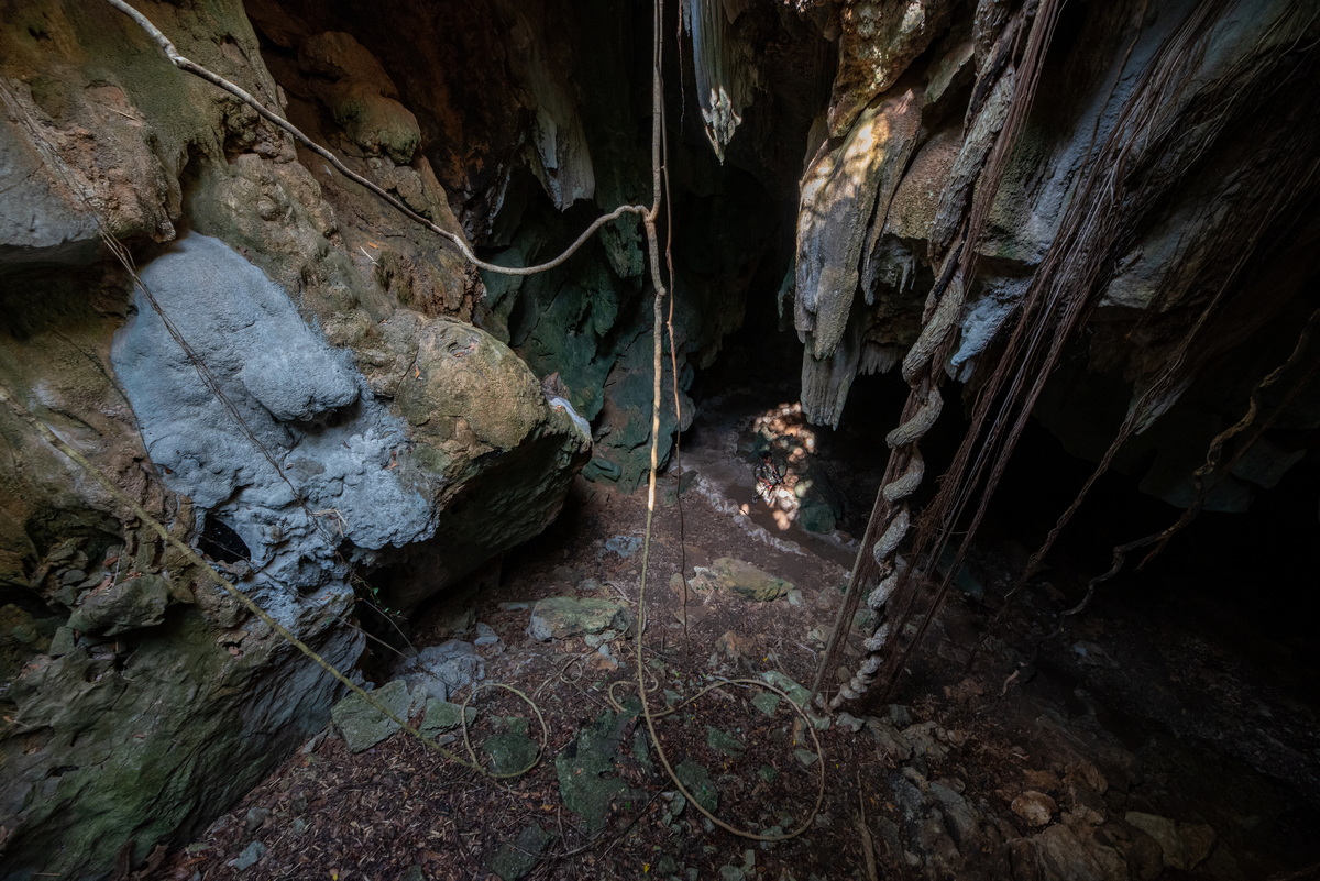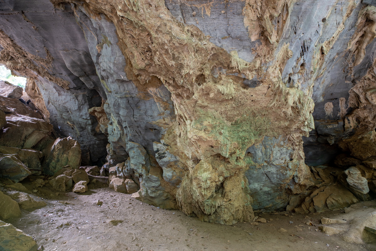 เมื่อไหลซึมลงสู่ใต้ดิน กรดอ่อนนี้จะแทรกซึมไปตามรอยร้าวของพื้นที่ ที่เกิดจากตะกอนแคลเซียมคาร์บอเนตและทำละลายหินปูนได้เป็นอย่างดี จึงเกิดการกัดกร่อนจนเป็นโพรงถ้ำ
