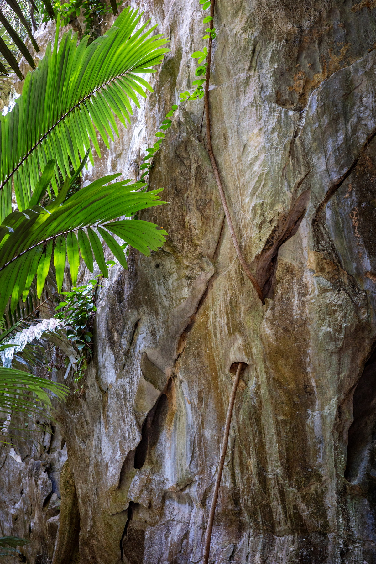 ต้นตาด (Areaga penata) หรือที่ชาวบ้านเรียกกันว่า “ต้นตาว” หรือ “ต้นต๋าว” เป็นพืชใบเลี้ยงเดี่ยวตระกูลปาล์ม ลำต้นสูงตรง แต่ไม่สูงเท่าปาล์ม หรือหมาก ไม่แตกหน่อ ไม่มีกิ่งก้านสาขา มีปล้อง มีหนาม ชอบอากาศเย็น อากาศชื้นและแสงรำไร ชอบชั้นดินลึก มักขึ้นในภูเขาหินปูน จึงทำให้ต้นตาดเติบโตได้ดีภายในหุบเขานี้ และเมื่อแพร่พันธุ์ออกไป ร่มใบของตาดที่แผ่ออกไปก็จะยิ่งปกคลุมปิดบังแสงแดดที่ส่องมาน้อยอยู่แล้ว น้อยลงไปอีก ทำให้พืชชนิดอื่นๆ ไม่สามารถเติบโตได้ ตาดเลยครองพื้นที่เกือบทั้งหมดของหุบเขา แต่ขณะเดียวกัน ด้วยความที่ตาดชอบลักษณะเฉพาะแบบนี้ จึงทำให้เติบโตที่อื่นได้ลำบาก ถือเป็นพืชเฉพาะถิ่นที่หาได้ยาก และควรต้องอนุรักษ์ไว้ นอกจากตาดแล้วจะยังมีพืชอื่นๆ ที่ชื่นชอบเขาหินและอากาศแบบนี้ แต่มีเพียงไม่กี่ชนิด เช่น ต้นเต่าร้าง เปล้า ค้างค้าวเล็ก กะพง ยมหินและไทร ที่จะเห็นขึ้นแทรกบ้างประปราย และจะมีไม้ชั้นบน หรือไม้สูงโปร่งที่พบมากก็คือ ต้นกะพง หรือ ต้นสมพง เป็นไม้โตเร็ว ผิวบาง มีรากพูพอนที่ใหญ่สามารถยึดกับดินได้ดี และต้นกะเชา ผิวหนา เรียกว่าเป็นต้นเบิกนำ มีลักษณะสูง จะมีไม้ที่เกาะอิงอาศัย จะเป็นพวกตระกูล ตะเข็บ ตะขาบ ท้ายเฟิร์น