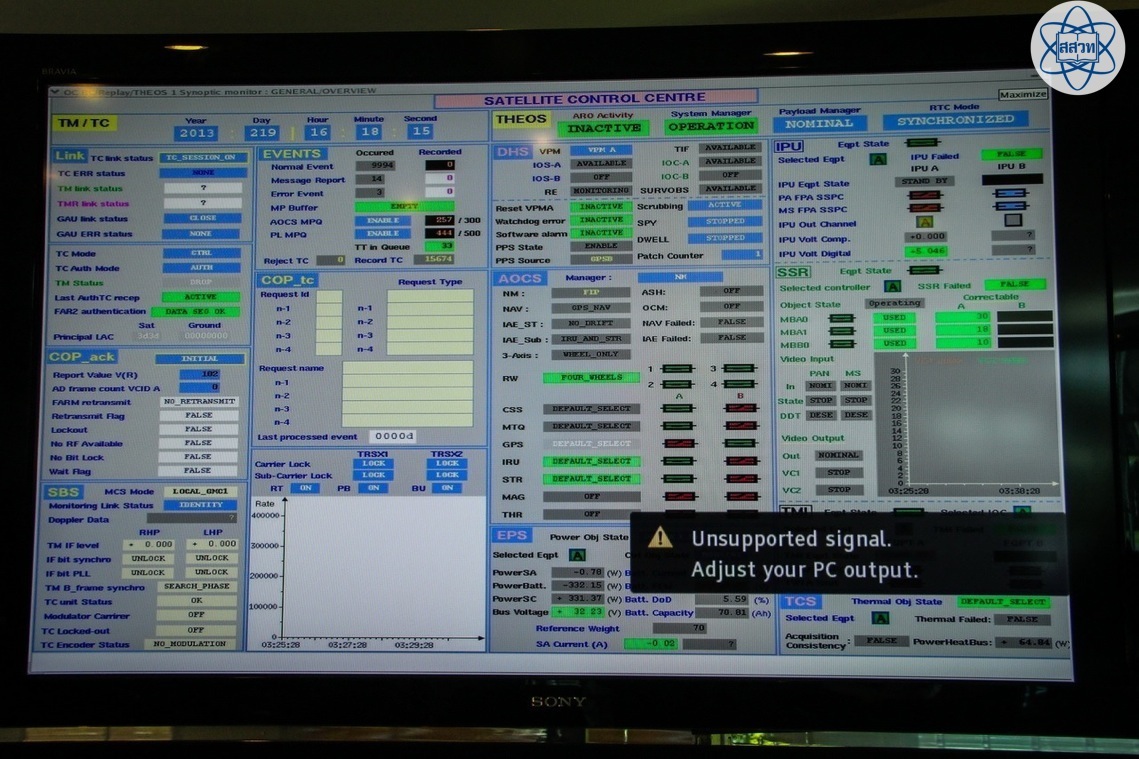 1.2 ศูนย์ควบคุมดาวเทียม (Satellite Control Center ; SCC) ทำหน้าที่ในการเฝ้าระวังและควบคุมดาวเทียมตั้งแต่เริ่มปล่อยจากพื้นโลก จนถึงช่วงเข้าสู่วงโคจรทั้งในสภาวะปกติและในช่วงที่มีเหตุฉุกเฉิน โดยการจัดการและประมวลผลข้อมูลสถานะของดาวเทียม (Housekeeping Telemetry) เพื่อประเมินสถานะและการทำงานของตัวดาวเทียมรวมทั้งจัดเตรียมตรวจสอบ ส่งสัญญาณคำสั่ง (Telecommand) แผนการทำงานของทั้งตัวดาวเทียม และอุปกรณ์ถ่ายภาพซึ่งได้รับมาจาก MPC (ศูนย์วางแผนการถ่ายภาพ)