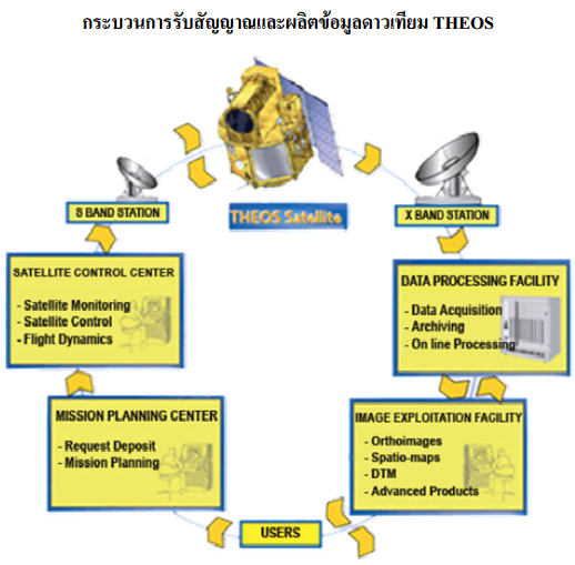 ภาพแสดงกระบวนการรับสัญญาณและผลิตข้อมูลดาวเทียมTHEOS