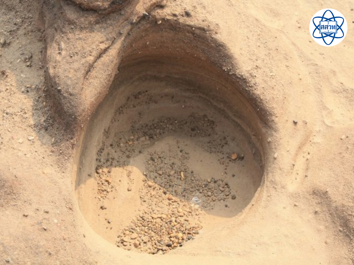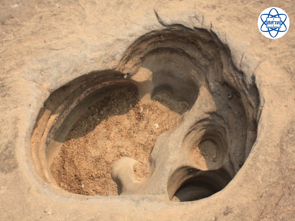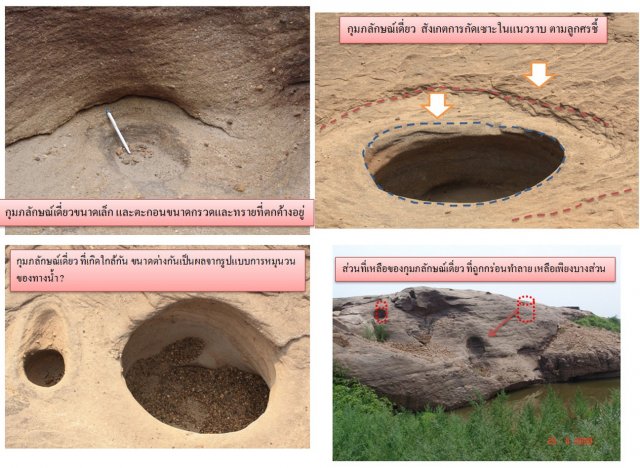 หินพื้นท้องน้ำกร่อน จากแม่น้ำโขงได้พาตะกอนไหลวนชนกับหินท้องน้ำ เกิดเป็นกุมภลักษณ์ และภายในกุมภลักษณ์ พบตะกอนขนาดทราย - กรวด ตกตะกอน
