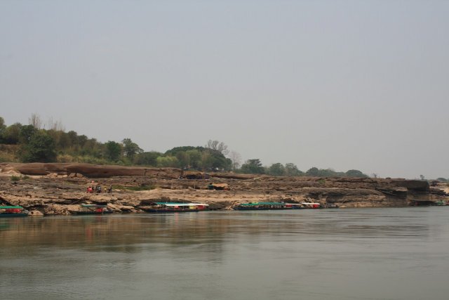 หินตะกอนจะผุพัง และถูกกร่อนออกไป โดยแม่น้ำโขง คงเหลือแต่คาลซิโดนี เนื่องจาก