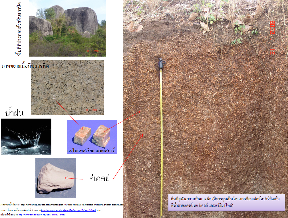 1) กระบวนการผุพังทางกายภาพ เป็นกระบวนการที่ทำให้แร่และหินแตกตัวมีขนาดเล็กลง เช่น