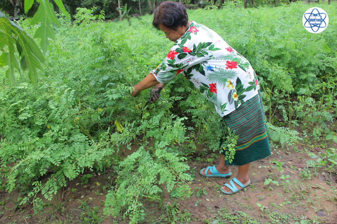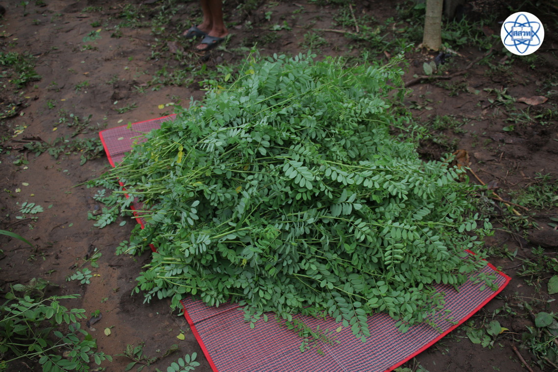 รูปที่ 7 การเก็บใบครามฝักงอทีละใบ บน : ต้นครามฤดูฝน ล่าง : ต้นครามฤดูแล้ง