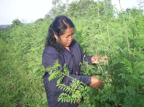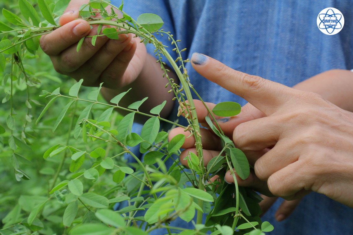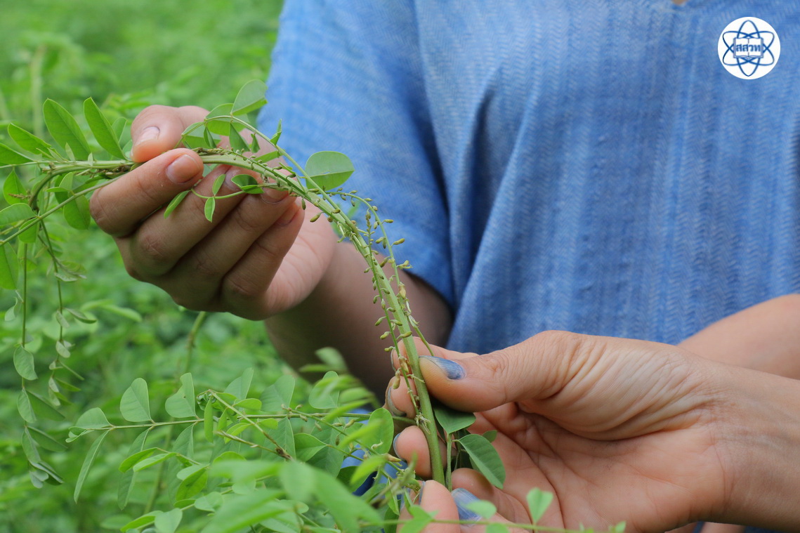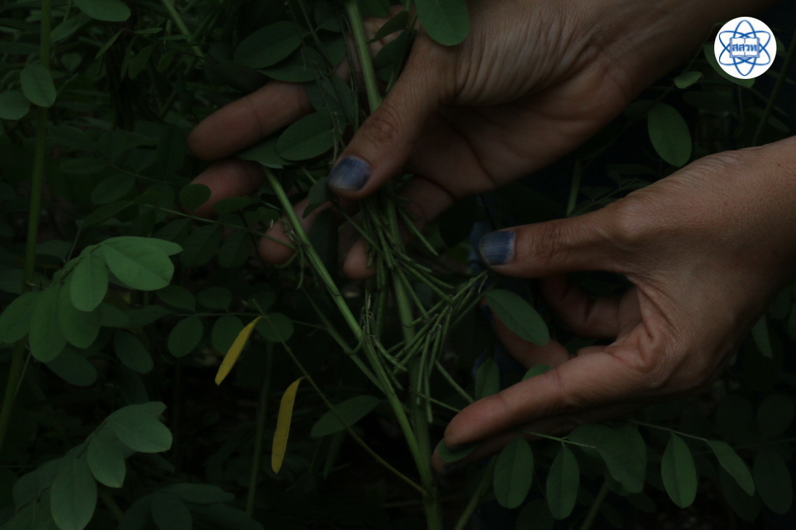 รูปที่ 6 พืชให้สีคราม ซ้าย : ครามฝักตรง กลาง : ครามฝักงอ ขวา : เปิก หรือ เบือก