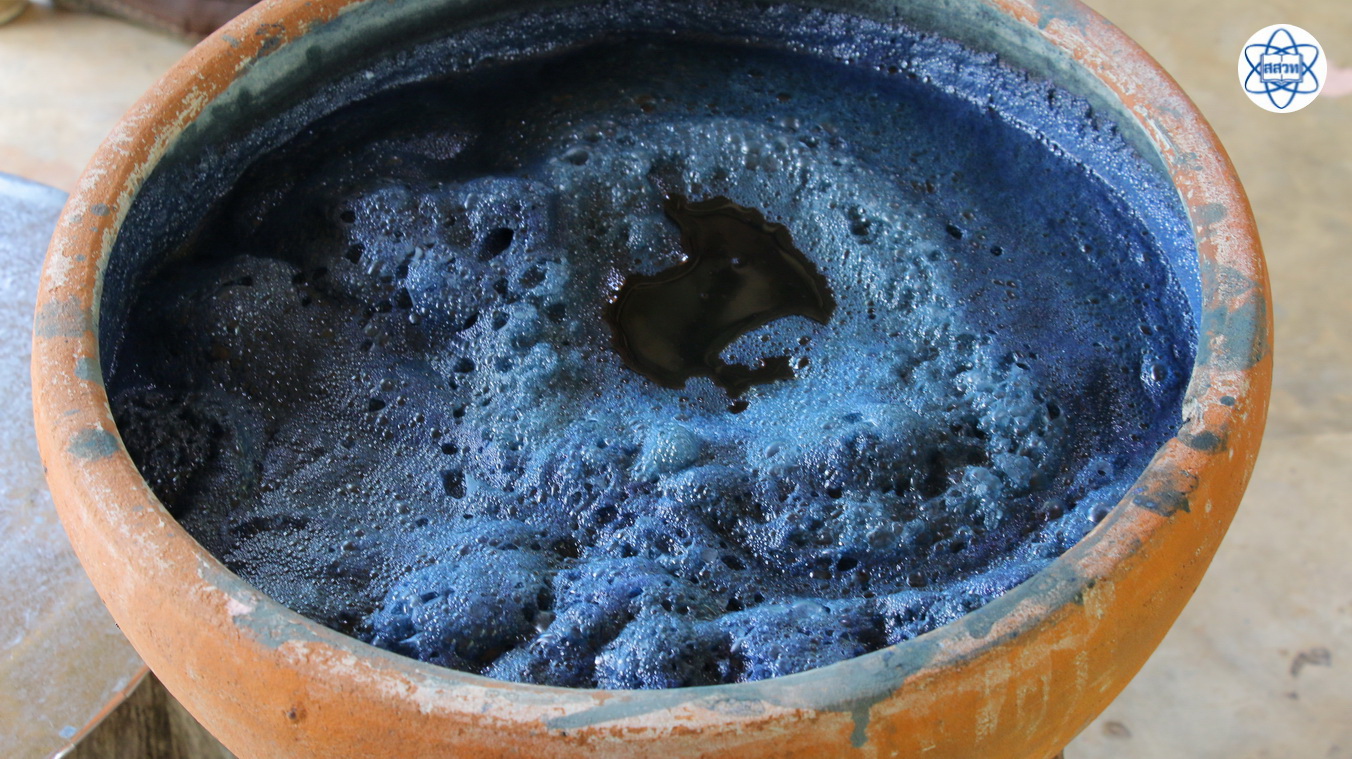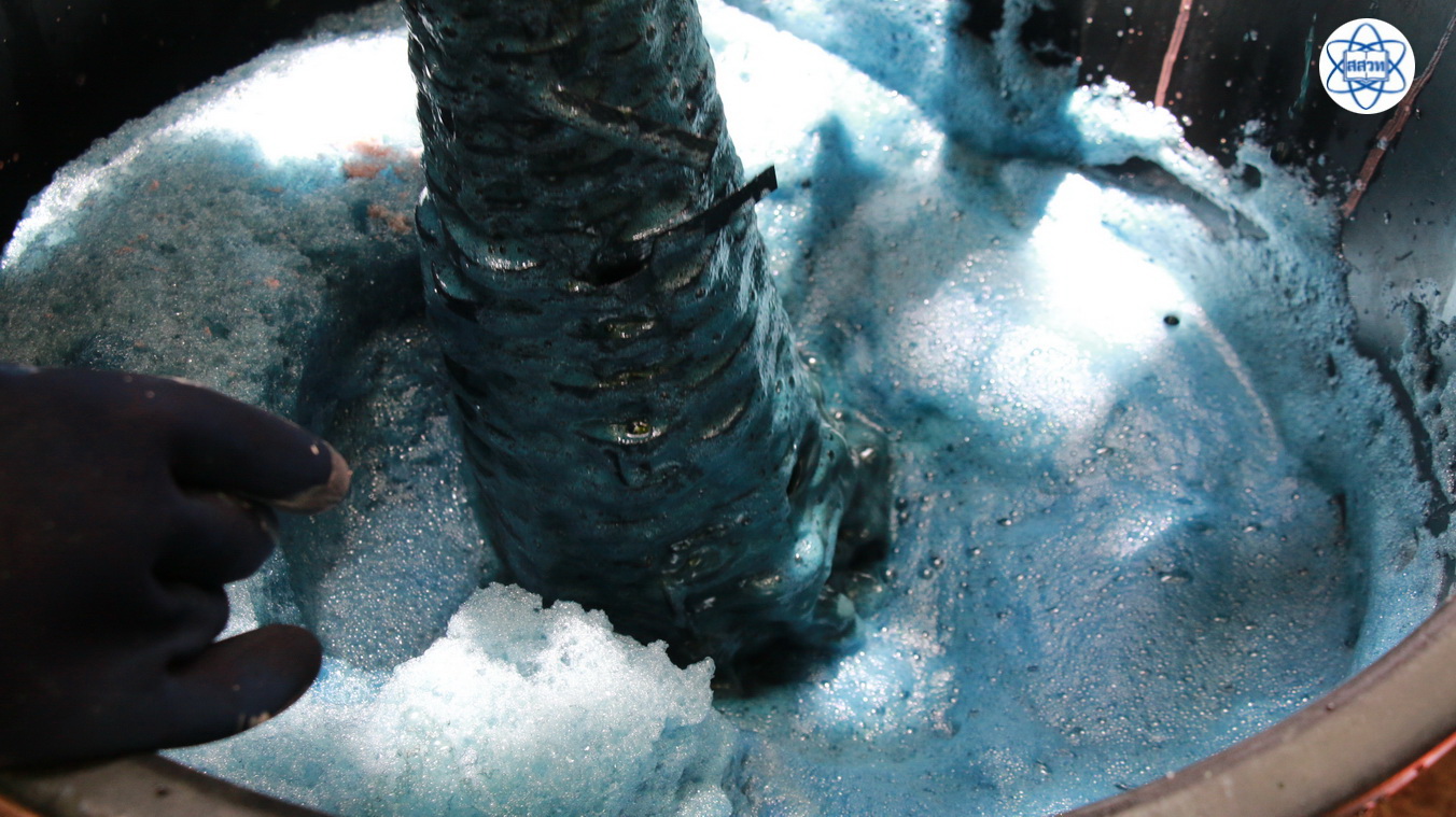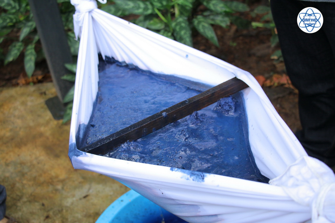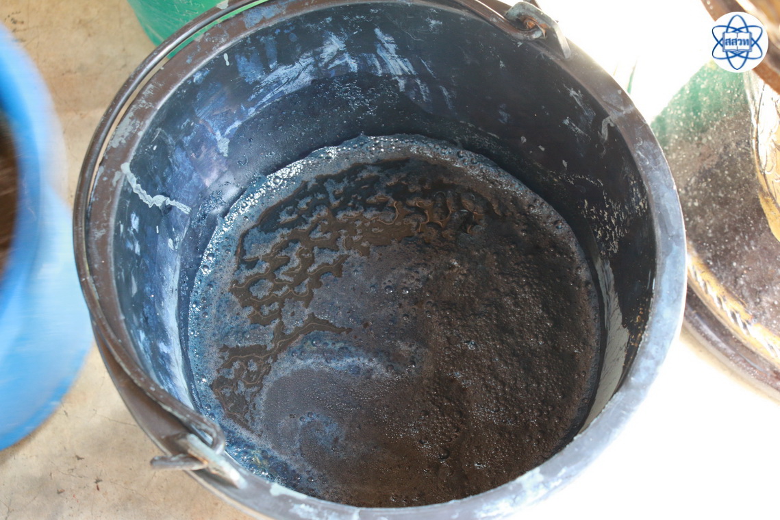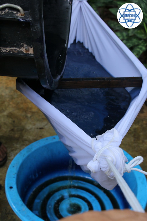 กวนน้ำครามและพักไว้ 1 คืน แยกได้เนื้อครามสีน้ำเงิน