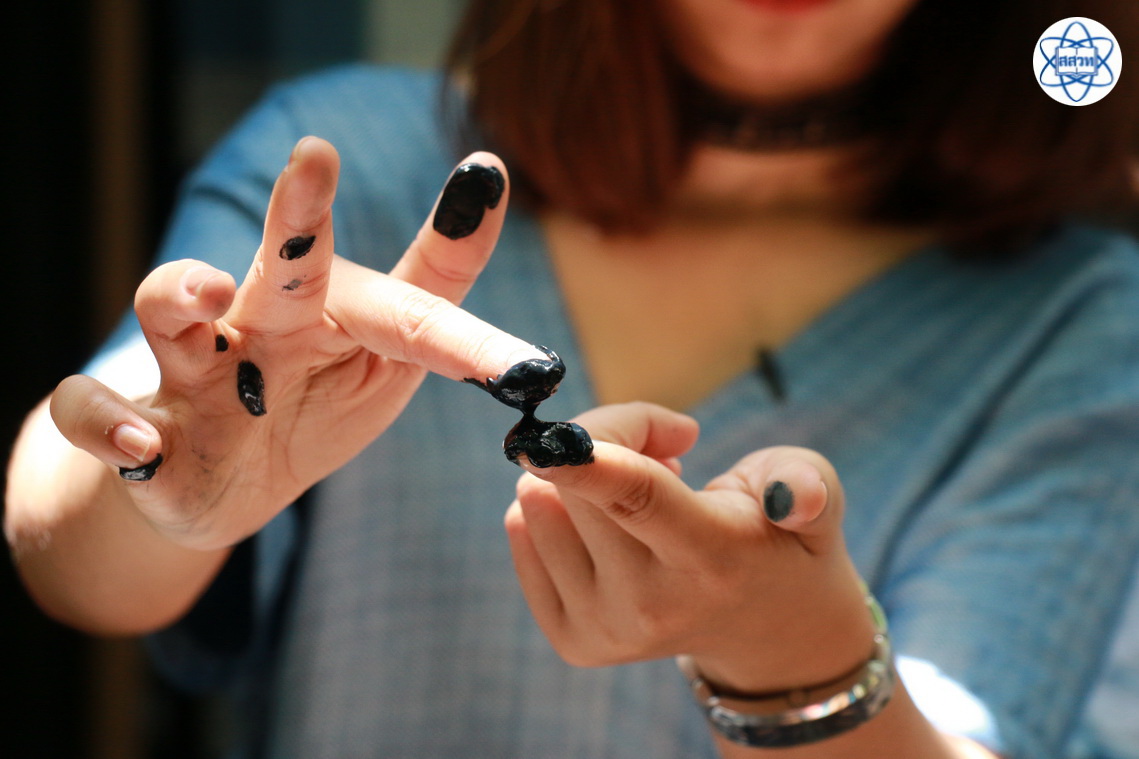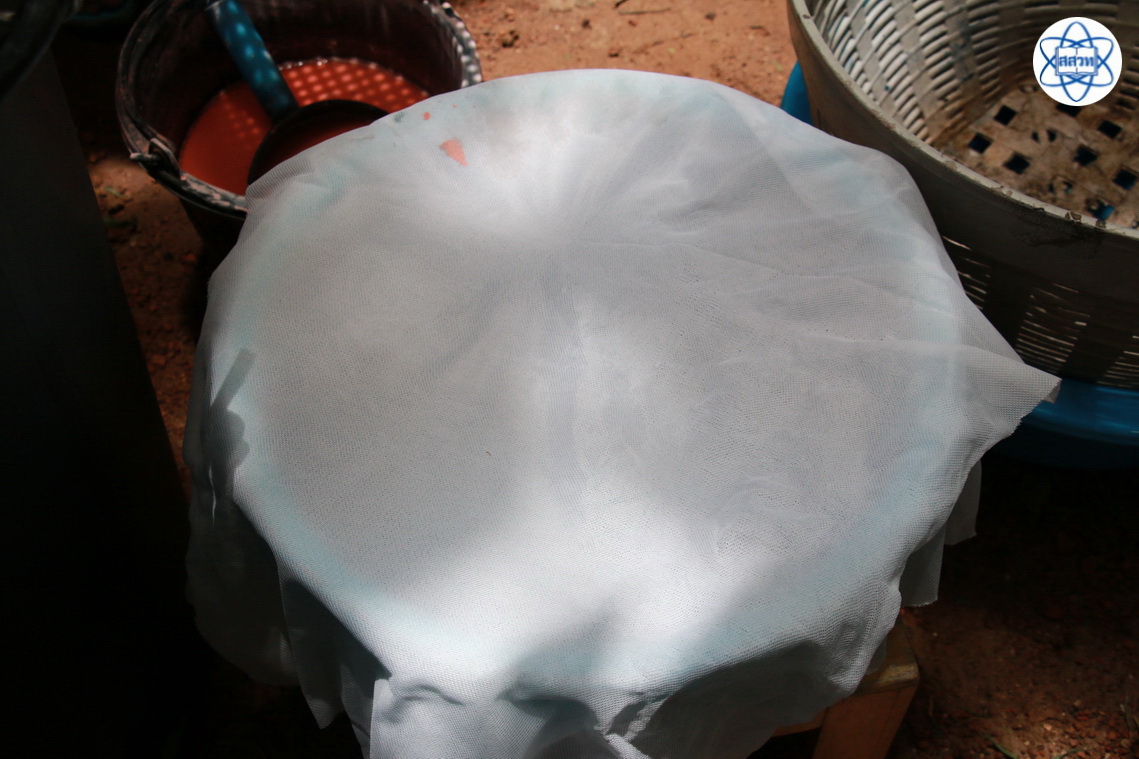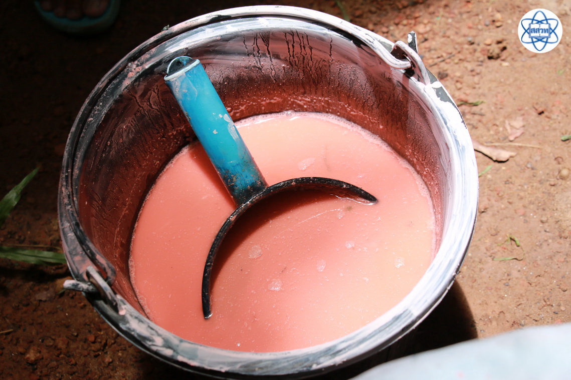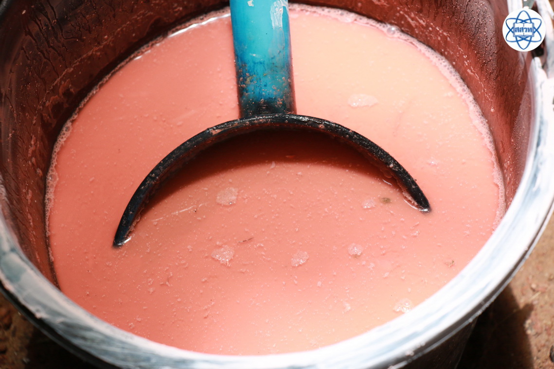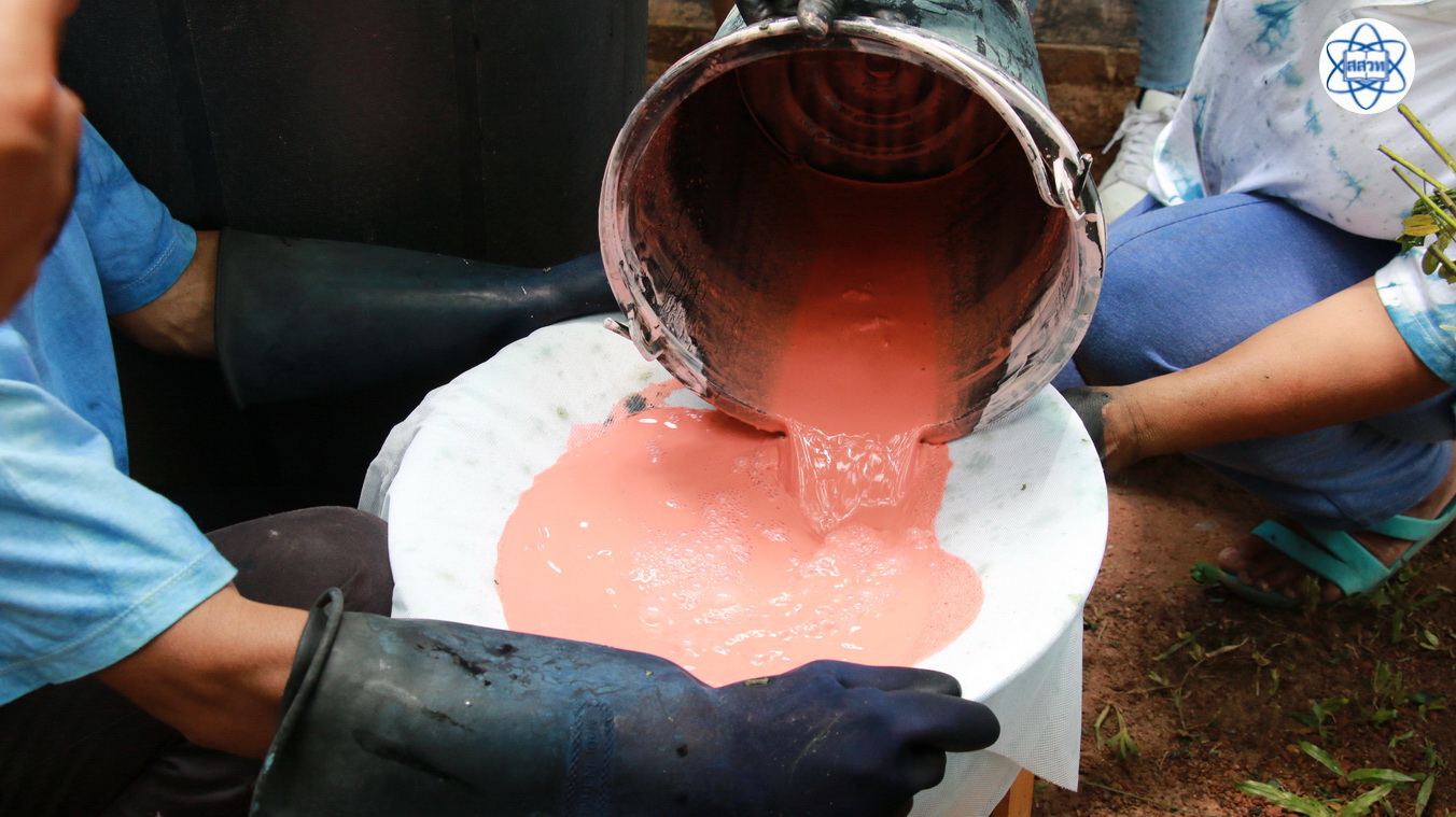 กวนน้ำครามและพักไว้ 1 คืน แยกได้เนื้อครามสีน้ำเงิน