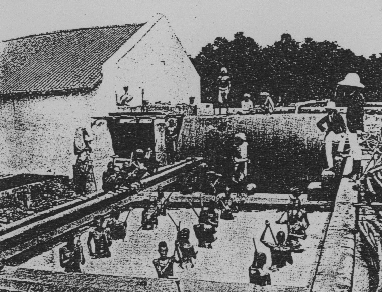 รูปที่ 1 การกวนน้ำครามในโรงงานผลิตครามผงของอังกฤษในอินเดีย