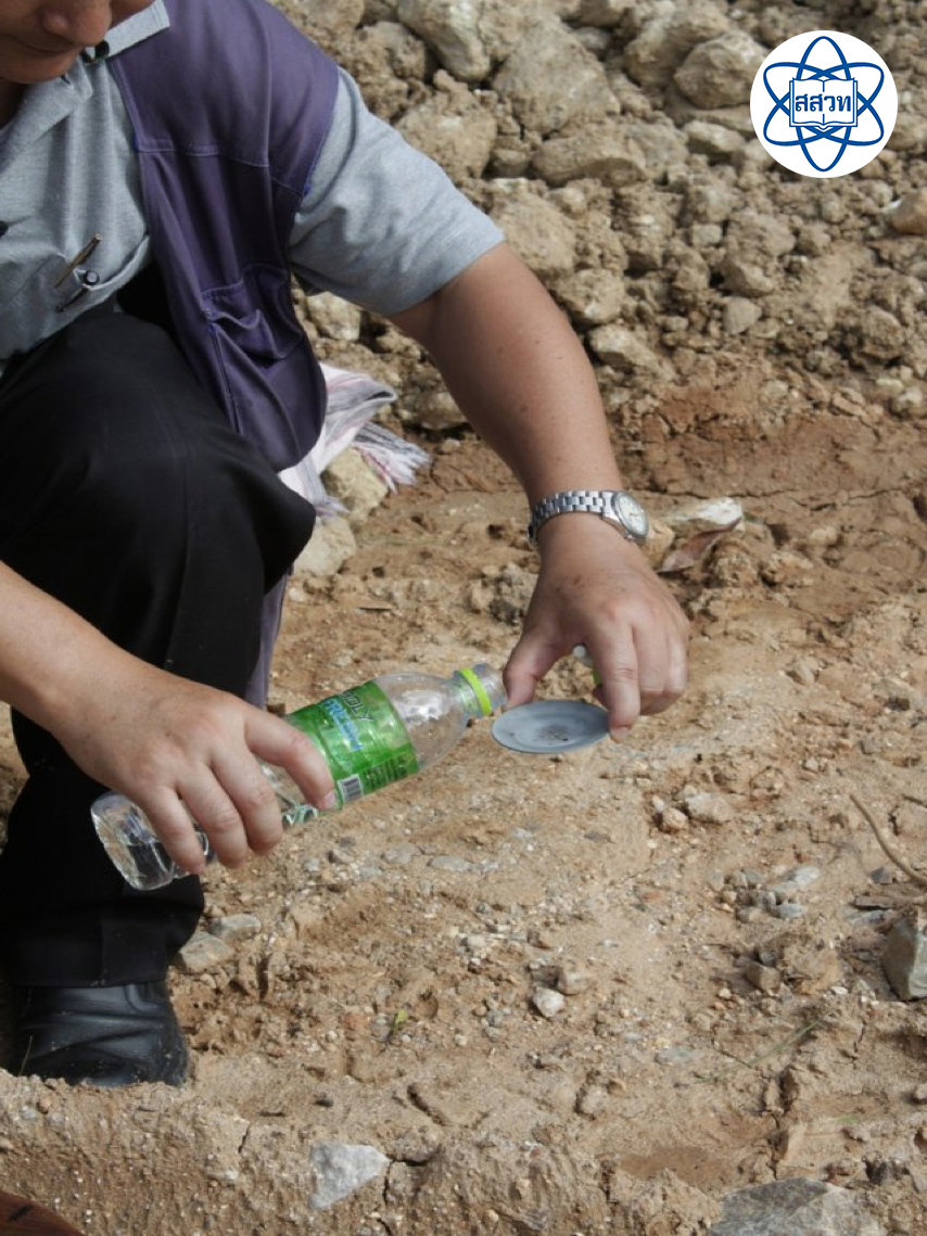 3. เทน้ำสะอาดลงบนเม็ดแร่เพื่อล้างกรดเกลือออก สังเกตผล