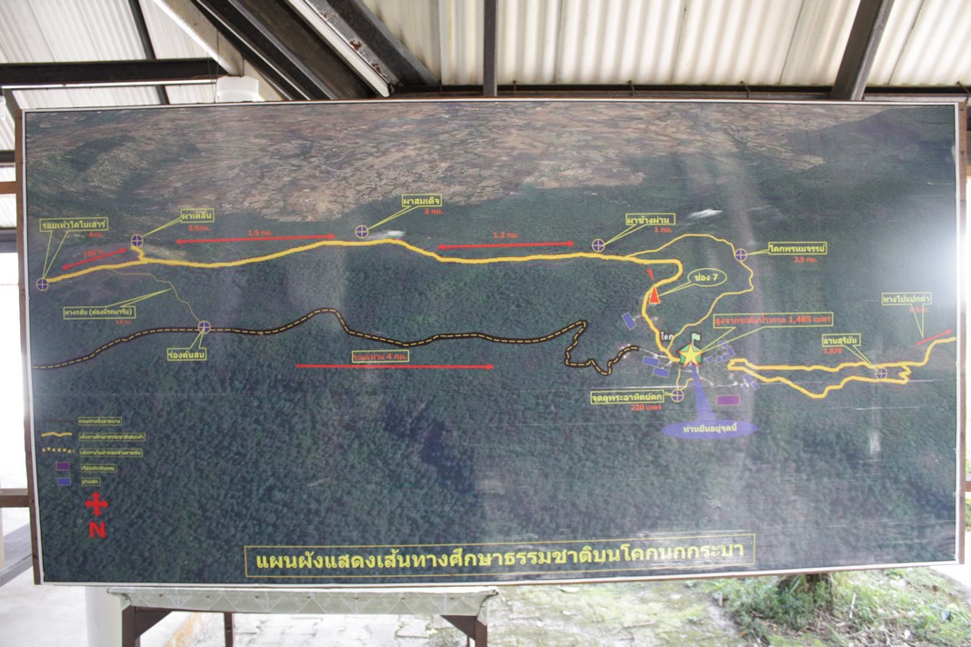 ถ้าเริ่มเดินทางจากตัวจังหวัดเลย ไปตามเส้นทางสายเลย-ภูเรือ ระยะทางประมาณ 36 กิโลเมตร ก็จะถึงถึงบ้านสานตม แล้วแยกซ้ายที่บ้านสานตมไปอีก 18 กิโลเมตร จะถึงที่ทำการเขตรักษาพันธุ์สัตว์ป่าภูหลวง และจากที่ทำการเขต ต้องเดินทางขึ้นไปบนภูหลวงตามเส้นทางเลียบไหล่เขาอีกประมาณ 7 กิโลเมตร ก็จะถึงหน่วยพิทักษ์ป่า โคกนกกระบา ซึ่งเป็นจุดเริ่มต้นการศึกษาสิ่งต่าง ๆ บนภูหลวง