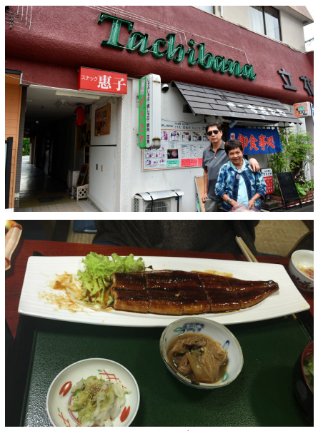 เมื่อถึงที่หมาย เราก็มุ่งหน้าไปยังร้าน Tachibana ซึ่งอยู่ต้นถนนคนเดิน เพื่อจัดการกินข้าวหน้าปลาไหลญี่ปุ่นที่แสนอร่อย ปลาไหลญี่ปุ่น (ชื่อวิทยาศาสตร์: Anguilla japonica, ญี่ปุ่น: 日本組 นิฮงอุนะงิ ) เป็นปลาไหลชนิดหนึ่งในวงศ์ปลาตูหนา (Anguilidae) มีพบในญี่ปุ่น เกาหลี จีน ไต้หวัน และ เวียดนาม ตลอดจนแถบเหนือของฟิลิปปินส์ เช่นเดียวกับปลาไหลอื่น ๆ ในวงศ์เดียวกัน ปลาไหลญี่ปุ่นใช้ชีวิตอยู่ในน้ำจืดเป็นส่วนใหญ่ แต่วางไข่ในน้ำทะเล พื้นที่วางไข่ของปลาไหลญี่ปุ่น คือบริเวณกระแสน้ำเส้นศูนย์สูตร เหนือบริเวณทางตะวันตกของมหาสมุทรแปซิฟิกไปจนถึงแถบตะวันตกของหมู่เกาะมาเรียนา ขณะที่ยังเป็นตัวอ่อน จะถูกเรียกว่าปลาเมือก ซึ่งจะถูกพัดพาโดยกระแสน้ำเส้นศูนย์สูตรเหนือไปทางตะวันตกของแปซิฟิก จากนั้นก็จะถูกพัดขึ้นทางเหนือไปยังดินแดนเอเชียตะวันออกโดยกระแสน้ำคุโระชิโอะ ปลาไหลญี่ปุ่น เป็นอาหารสำคัญของชาวเอเชียตะวันออก ทำให้เกิดเป็นอุตสาหกรรมประมงบ่อเลี้ยงปลาในประเทศส่วนใหญ่ของภูมิภาคนี้ คนญี่ปุ่นเรียกปลาชนิดนี้ว่า อุนะงิ และถือเป็นวัตถุดิบสำคัญในวัฒนธรรมอาหารของญี่ปุ่น ร้านอาหารจำนวนมากนิยมเสิร์ฟโดยการย่าง และกลายเป็นเมนูที่เรียกว่า คะบะยะกิ (蒲烤) นอกจากนี้ยังถูกนำมาใช้ในศาสตร์การแพทย์ของจีนด้วย