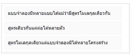ภาพ 5 ตัวอย่างการให้นิยามไฮโซเมอโครงสร้างนักเรียนจาก Google Forms นิยามไอโซเมอร์ของนักเรียน