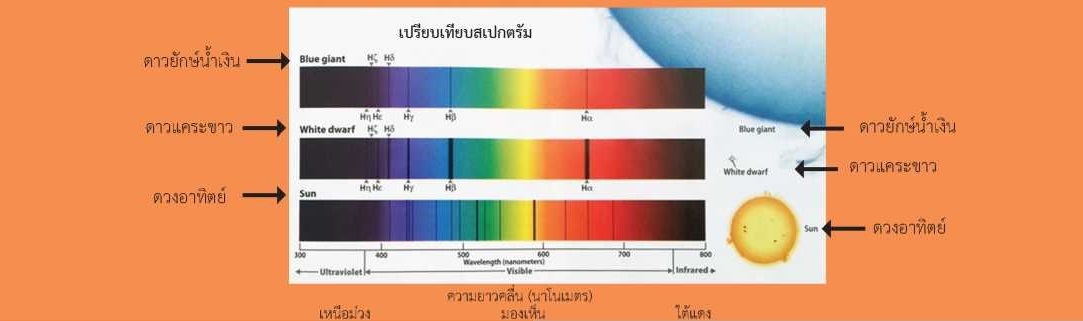 ในขณะที่ดวงอาทิตย์แสดงแถบมืดของเส้นการดูดกลืนหลายเส้น ดาวฤกษ์ที่ร้อนกว่ามีเส้นสเปกตรัมง่าย ๆ ที่แสดงเพียง “ลำดับบาลเมอร์” ของไฮโดรเจนดาวแคระขาวที่ก่อตัวขึ้นใหม่มีอุณหภูมิใกล้เคียงกับอุณหภูมิของดาวยักษ์น้ำเงินที่ร้อน ดังนั้นจึงแสดงเส้นบาลเมอร์ให้เห็นเช่นกัน แต่เนื่องจากความดันที่รุนแรงบนพื้นผิวของดาวแคระขาว เส้นการดูดกลืนเหล่านี้จึง“ถูกทำให้กว้างขึ้นจากความดัน” และมีความกว้างมากกว่าของดาวฤกษ์ที่เผาไหม้ไฮโดรเจนอยู่มาก โดยการสังเกตเส้นบาลเมอร์เหล่านี้ นักวิทยาศาสตร์สามารถวัดอุณหภูมิของซากและแรงโน้มถ่วงบนพื้นผิวได้อย่างถูกต้อง