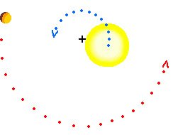 ดาวเคราะห์ที่โคจรรอบดาวจะดึงดาวฤกษ์ด้วย ถ้าระบบนั้นหันหน้าเข้าหาเรา (face-on) และดาวเคราะห์นั้นมีมวลมากพอ การเคลื่อนที่เพียงเล็กนั้นก็สามารถตรวจพบได้โดยแอสโตรเมทรี (astrometry) จากภาพด้านล่าง ดาวเคราะห์เคลื่อนตามวงโคจรของมัน (จุดสีแดง) ดาวฤกษ์โคจรรอบจุดศูนย์กลางมวล เรียกว่า "แบรีเซนเตอร์" (bary center) (เครื่องหมาย +) ในระบบจริงดาวฤกษ์มีมวลมากกว่าดาวเคราะห์มาก แบรีเซนเตอร์จึงอยู่ในดาวฤกษ์และเส้นทางที่มันเคลื่อนที่ (เส้นสีน้ำเงิน) จะน้อยกว่าวงกลม แอสโตรเมทรีจะใช้ได้กับการวัดตำแหน่งของดาวที่แม่นยำมากเท่านั้น