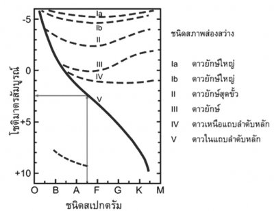 รูปแสดงความสัมพันธ์ระหว่างคาบและแมกนิจูดสัมบูรณ์