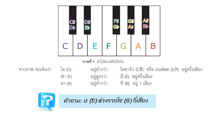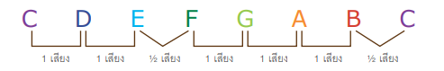 ภาพที่ 2 ความห่างของโน้ตในบันไดเสียง C เมเจอร์