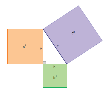 สำหรับรูปสามเหลี่ยมมุมฉากใด ๆ พื้นที่ของรูปสี่เหลี่ยมจัตุรัสบนต้านตรงข้ามมุมฉาก จะเท่ากับผลบวกของพื้นที่ของรูปสี่เหลี่ยมจัตุรัสบนด้านประกอบมุมฉาก หรือจากภาพที่ 3 จะได้ว่า c2 = a2 + b2 ซึ่งความสัมพันธ์นี้เป็นที่รู้จักกันในนาม "ทฤษฎีบทพีทาโกรัส" มานานกว่า 2,500 ปี จากทฤษฎีบทพีทาโกรัส เราจะพบว่ามีชุดของจำนวนเต็มที่แทน a b และ c ได้หลายชุด เช่น