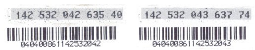 ต่อไปเราจะพิจารณาวิธีการเติมเงินของระบบ True move แบบเติมเงิน พิจารณาหมายเลขบัตรและรหัสบัตรเติมเงิน 2 ใบนี้ จะเห็นว่าบัตร 2 ใบนี้ มีหมายเลขบัตรเรียงต่อกันคือ 040400861142532042 และ 040400861142532043 สมมติว่าเราซื้อบัตรเติมเงิน 2 ใบนี้มาใช้เรียบร้อยแล้วเช่นกัน เราอยากรู้ว่าเราจะสามารถกดรหัส ที่น่าจะเป็นไปได้ ของบัตรเติมเงินหมายเลขอื่นๆ ใกล้เคียงได้อย่างไร