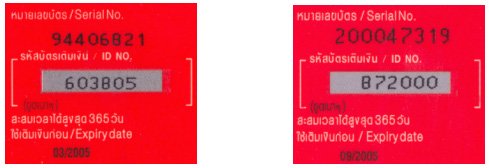 จะเห็นว่าบัตรใบแรกที่มีวันหมดอายุในเดือนมีนาคม ปี 2005 หมายเลขบัตรมีตัวเลขเพียง 8 หลัก (สังเกตว่า 94406821 นั่นเป็นตัวเลข 8 หลักที่มีค่ามาก หมายความว่าหมายเลขบัตร 8 หลักถูกใช้ไปจนเกือบหมดแล้ว) ส่วนบัตรใบที่ 2 ที่มีวันหมดอายุในเดือนกันยายน ปี 2005 หมายเลขบัตรมีตัวเลขเพิ่มขึ้นเป็น 9 ตัว เพราะการเพิ่มจำนวนหลักของหมายเลขบัตรเติมเงินนั่นไม่ได้ยุ่งยากเหมือนการ เพิ่มจำนวนหลักของเบอร์โทรศัพท์ ดังนั้นจนถึงปัจจุบันนี้จึงยังไม่ปรากฏบัตรเติมเงินที่มีตัวเลขซ้ำเดิมออกมาขายตามท้องตลาดเลย