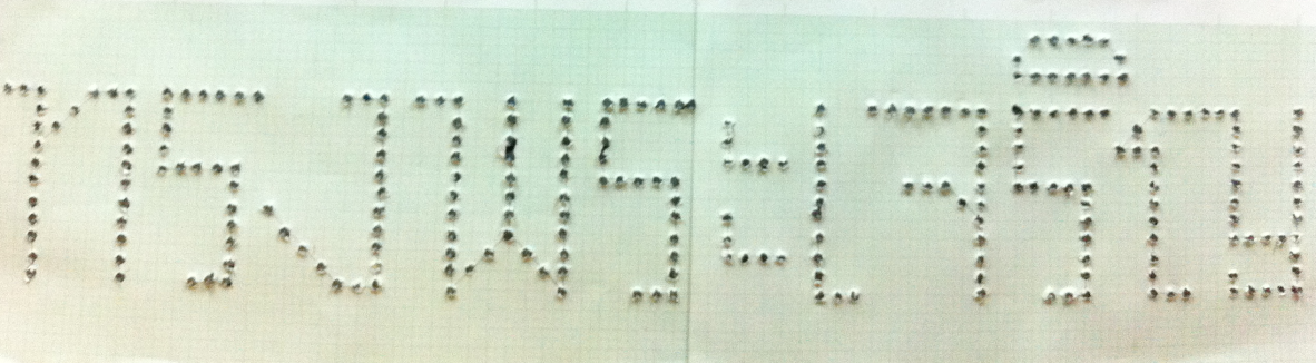 ภาพที่ 5 ข้อความที่ทำการเจาะให้เป็นรูมีขนาดเท่ากับหลอดไฟประดับ LED