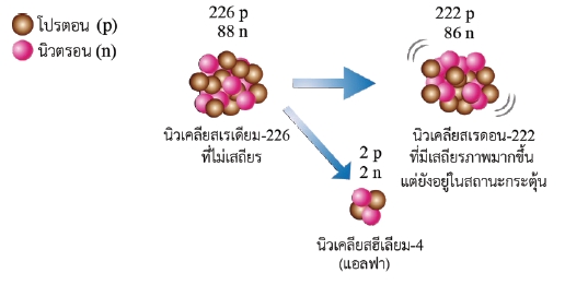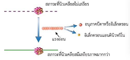 ภาพ 4 นิวเคลียสที่ไม่เสถียรเปลี่ยนไปเป็นนิวเคลียสที่มีเสถียรภาพมากกว่า