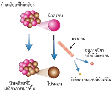ภาพ 6 แบบจำลองการเปลี่ยนองค์ประกอบของนิวเคลียสไปเป็นนิวเคลียสที่มีเสถียรภาพมากกว่าเดิม