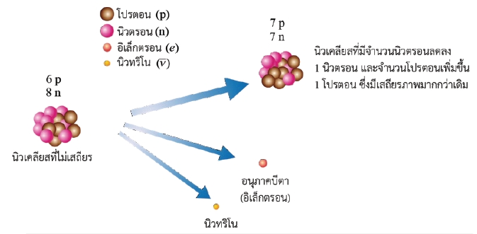 ก. แบบจำลองการสลายให้อนุภาคบีตาของนิวเคลียสที่ไม่เสถียร |