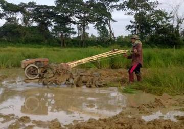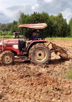 ภาพที่ 2 การไถเตรียมดินด้วยรถไถเดินตาม