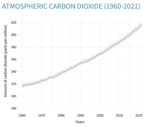 ภาพ 2 ปริมาณแก๊สคาร์บอนไดออกไซด์ตั้งแต่ปี ค.ศ. 1960 - 2021