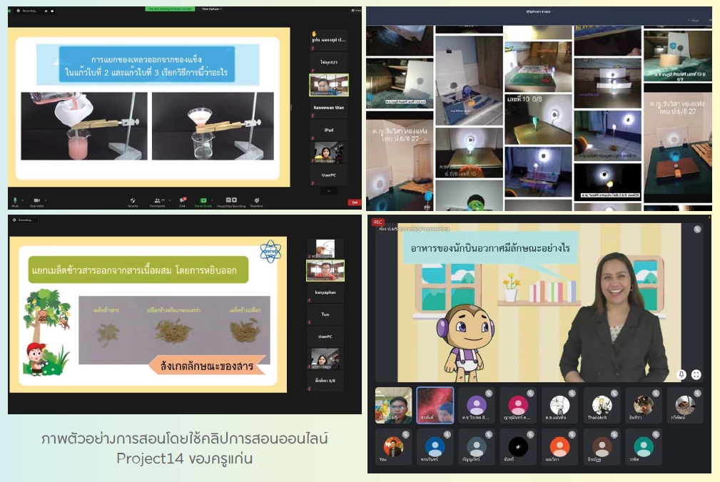 ครูรัตนากร สังข์ขรณ์ หรือ ครูปัท ผู้สอนวิชาวิทยาศาสตร์ ระดับประถมศึกษา จากโรงเรียนบ้านศาลาลัย ครูธัชวุฒิ กงประโคน หรือครูแก่น ผู้สอนวิทยาศาสตร์ ระดับประถมศึกษา จากโรงเรียนอนุบาลชัยภูมิ และครูภาธินี รัตนนิลอมร หรือครูไหม ผู้สอนวิชาวิทยาศาสตร์ ระดับประถมและมัธยมศึกษาตอนต้น โรงเรียนเทศบาล 1 (ทุ่งฟ้าบดราษฎร์บำรุง) เป็นผู้สอนที่ได้ปรับเปลี่ยนแนวทางการสอน อันเนื่องมาจากสถานการณ์โควิด-19 โดยทั้งสามท่านได้ร่วมแลกเปลี่ยนประสบการณ์เกี่ยวกับการปรับตัวจากการสอนแบบ On-site ที่มีการพบหน้ากับนักเรียนตามปกติ มาเป็นการสอนแบบผสมผสานระหว่าง On-site และ Online และการสอนแบบ Online อย่างเต็มรูปแบบ โดยครูปัทได้แลกเปลี่ยนประสบการณ์ว่า ในช่วงแรกๆ ของการปรับตัว ตนเองประสบปัญหาในเรื่องการจัดเตรียมสื่อการสอน เนื่องจากในภาวะปกติการสอนวิชาวิทยาศาสตร์ จะต้องเน้นให้นักเรียนได้ลงมือปฏิบัติ เพื่อส่งเสริมความเข้าใจแนวคิดทางวิทยาศาสตร์ แต่เมื่อเกิดการเปลี่ยนแปลงในช่วงสถานการณ์โรคระบาด ครูปัทได้เลือกใช้คลิปมาประกอบการสอนทั้งแบบผสมผสาน และแบบ Online โดยวิธีการที่ครูปัทใช้ คือ ครูยังเป็นผู้ดำเนินการสอนตามปกติ โดยในกิจกรรมที่นักเรียนสามารถหาอุปกรณ์ได้ ครูปัทจะให้เวลานักเรียนไปลองทำกิจกรรมด้วยตนเองมาก่อน แล้วมาสังเกตผลจากคลิปรวมถึงอภิปรายร่วมกันอีกครั้งตอนเจอกับนักเรียนแบบออนไลน์ผ่านแพลตฟอร์มต่าง ๆ ดังนั้น วิธีการของครูปัท คือ เลือกใช้เนื้อหาหรือกิจกรรมบางส่วนในคลิปมาเปิดให้นักเรียนชม ประกอบการสอนของตนเอง โดยครูมีหน้าที่คอยป้อนคำถาม เพื่อกระตุ้นการคิดและจัดทำใบงานให้นักเรียนได้ฝึกปฏิบัติระหว่างเรียน