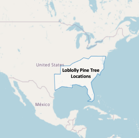 Loblolly Pine (Pinus taeda) เป็นต้นไม้ที่พบทางตะวันออกเฉียงใต้ของสหรัฐอเมริกา ตั้งแต่ตอนใต้ของรัฐนิวเจอร์ซีถึงตอนกลางของรัฐฟลอริดา และแถบตะวันตกจนถึงตะวันออกของรัฐเท็กซัส สามารถพบ Loblolly Pine ได้ทางตะวันออกเฉียงใต้ของรัฐโอกลาโฮมา ตอนกลางของรัฐอาร์คันซอ และตอนใต้ของรัฐเทนเนสซี บริเวณที่พบ Loblolly Pine ดังภาพ 5 โดย Loblolly Pine เป็นต้นไม้ที่ใช้ในการจัดสวน และพบได้ในสวนสาธารณะ สวนรุกขชาติ สนามหญ้า และอื่นๆ ลักษณะของต้น เปลือก ใบ และผล แสดงในภาพ 6