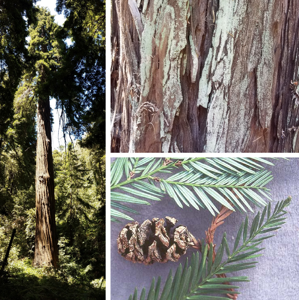 ภาพ 12 ต้น เปลือก ใบ และผล Coast Redwood Trees